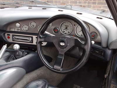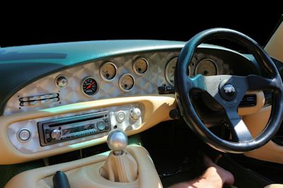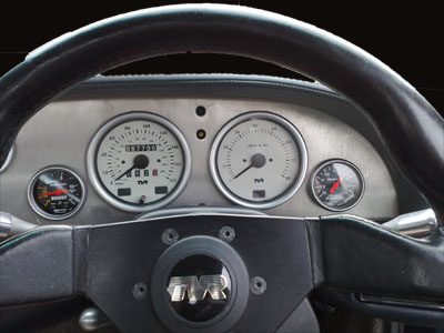 1996 TVR Chimaera with a brushed stainless dashboard cut with two extra gauges for boost and Air Fuel Ratio gauge |