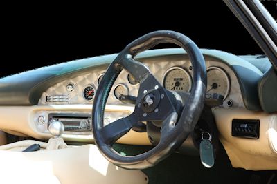 Brushed Satin Black dashboard installed in a 1996 TVR Chimaera with Caerbont gauges |